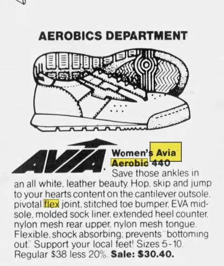 In this item, I want to discuss the most recounted pair of sneakers, the infamous black Avia Aerobic shoes, model 445b, size 11 1/2. Model 445 came in white, and white aerobic shoes didn’t fit the profile of the so-called Night Stalker. Interestingly, in the Netflix documentary Night Stalker: The Hunt for a Serial Killer, the detectives refer to the Avia model as a 440, which they inexplicably show instead. That is incorrect.