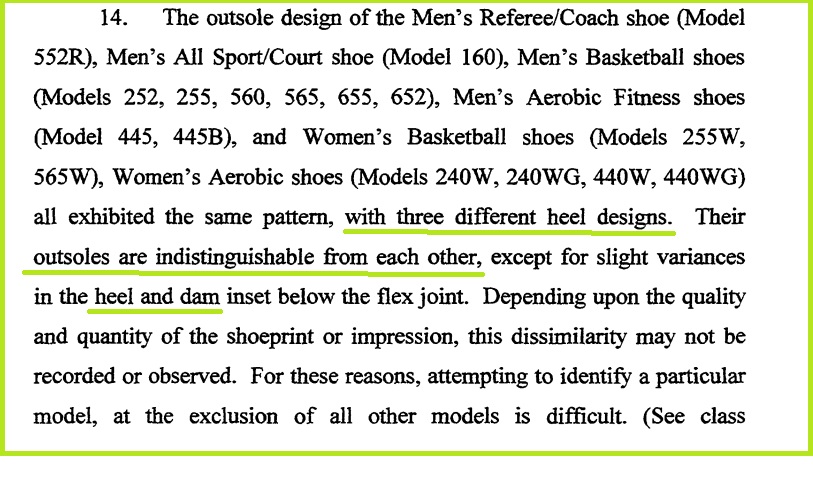 Without those heel inclusions, it cannot be narrowed down, and as this sole patent was in use for the other models before 1985 (only the 445 and 445b were released that year), just how many different shoes do you imagine were already out there with that same sole pattern?