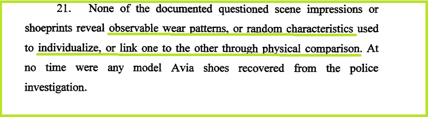 There is no proof whatsoever that Richard ever purchased, owned, borrowed, danced the Tango, or ever wore a pair of Avia sneakers. No evidence, and no one who knew him ever said so, apart from law enforcement and counsel for the prosecution.
