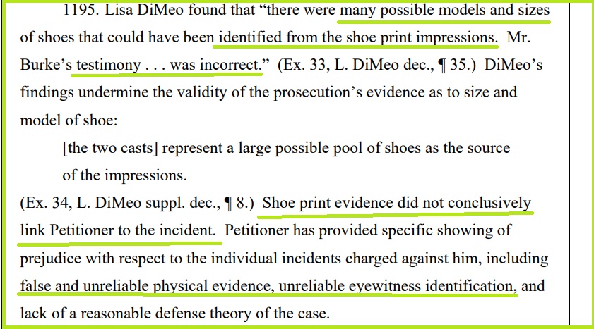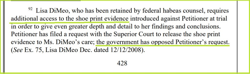 The information within this article comes from the Federal Petition of the Writ Of Habeas Corpus, filed by the Public Defenders Office in 2008, and the declaration of Forensic Specialist Lisa DiMeo (document 7-19). Both of these are available through the Plainsite.org for anyone looking.