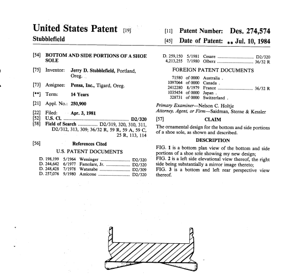 In Jerry Stubblefield’s design patent for the Aerobic sole, there were TWO heel designs in the Aerobics class.
