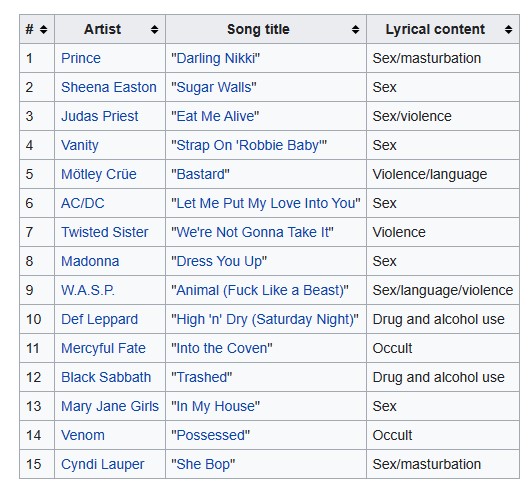This eventually led to the birth of the Parents Music Resource Center, in 1985, and the “Filthy Fifteen”, a list of what was deemed the most disgusting songs and the requirement of parental advisory stickers on albums. Most were about sex and drugs, but a couple on the list were because of the “Occult”. AC/DC made the list, but not for Highway to Hell, Hell’s Bells or Night Prowler.