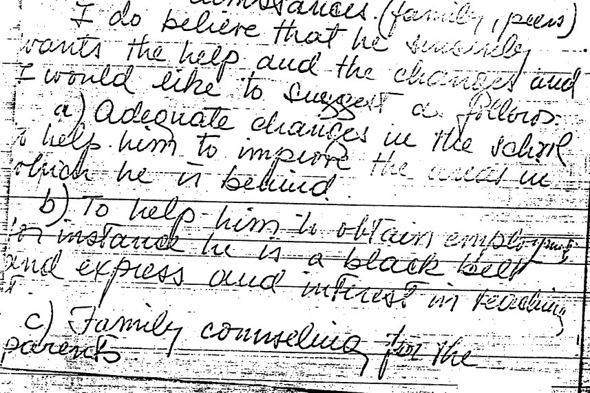 The El Paso Child Guidance Center recommended individual counseling for Richard and family counseling for him and his parents. From the information that is available to us, it does not appear this happened. Clearly, Richard needed help at this point in his life because he was struggling with depression, suicidal thoughts, using drugs, getting in trouble for not going to school, and had several encounters with law enforcement.