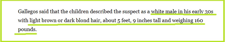 1. And as for the other child incidents, how did a 5ft 9 Caucasian man with dirty blonde hair suddenly morph into the 6ft 1 Hispanic Ramírez? Law enforcement seems to be telling victims their descriptions are wrong, so pick the bad man wearing number 2, ok?