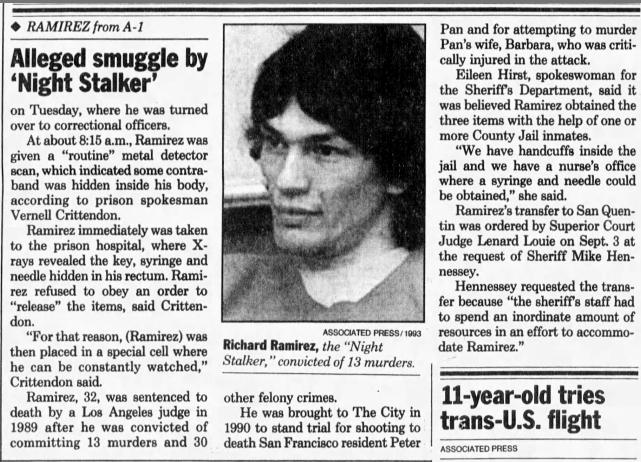 “The [San Francisco County] Sheriff’s Department sought the transfer because “the Sheriff’s staff must spend an inordinate amount of resources in an effort to accommodate Ramirez. [He] has numerous visitors … which require an additional deputy to be assigned to the jail’s visiting lobby.”