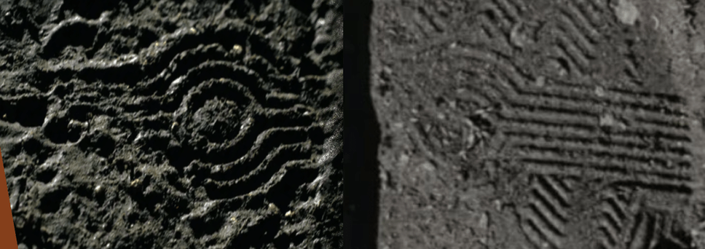 The above photo shows the impressions of one circle and three concentric rings, leading to six parallel lines. The ‘Night Stalker Avias‘ have a circle and four concentric rings with eight parallel lines. See below: