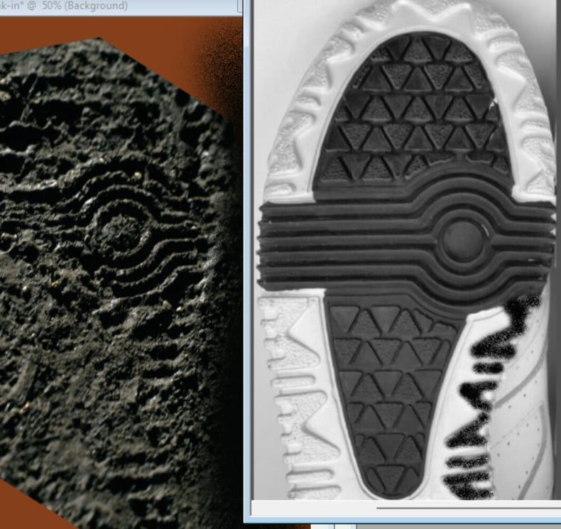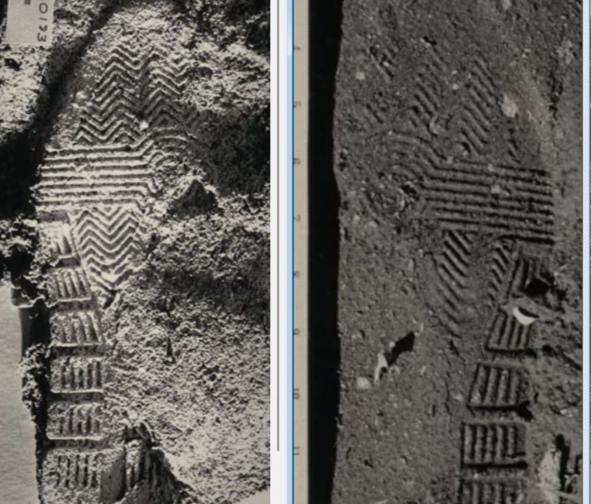In Episode 3, they show a cast of a shoeprint (below). It looks like a different print to the Rodriguez photograph but again, you can clearly see features of the Avia 460.