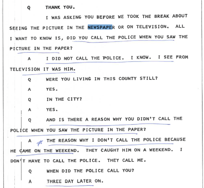 HERNANDEZ: And is there a reason why you didn’t call the police when you saw the picture in the paper?